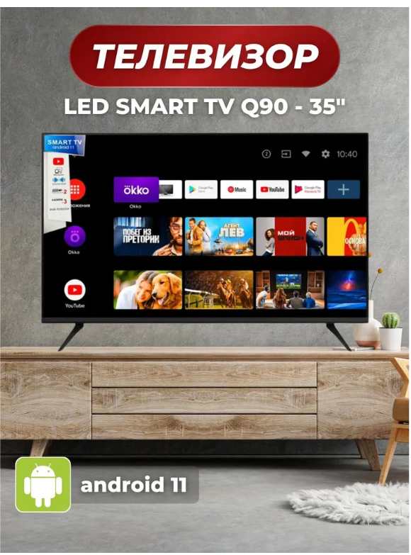 Телевизор Smart TV Q90 35s имеет изысканный дизайн, узкую рамку в 2 мм, стильные и устойчивые ножки, не скользящие по тумбе под телевизор, гармонично впишется в любой интерьер. Достоинства данного смарт тв телевизора: 4х ядерный процессор, операционная система android 11.0, встроенная память 8 GB, подключение к интернету по протоколу Wi-Fi и LAN соединению, четкое и насыщенное изображение, лучшие приложения для смарт тв.