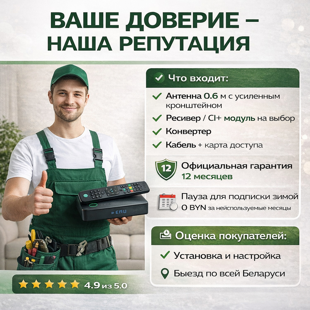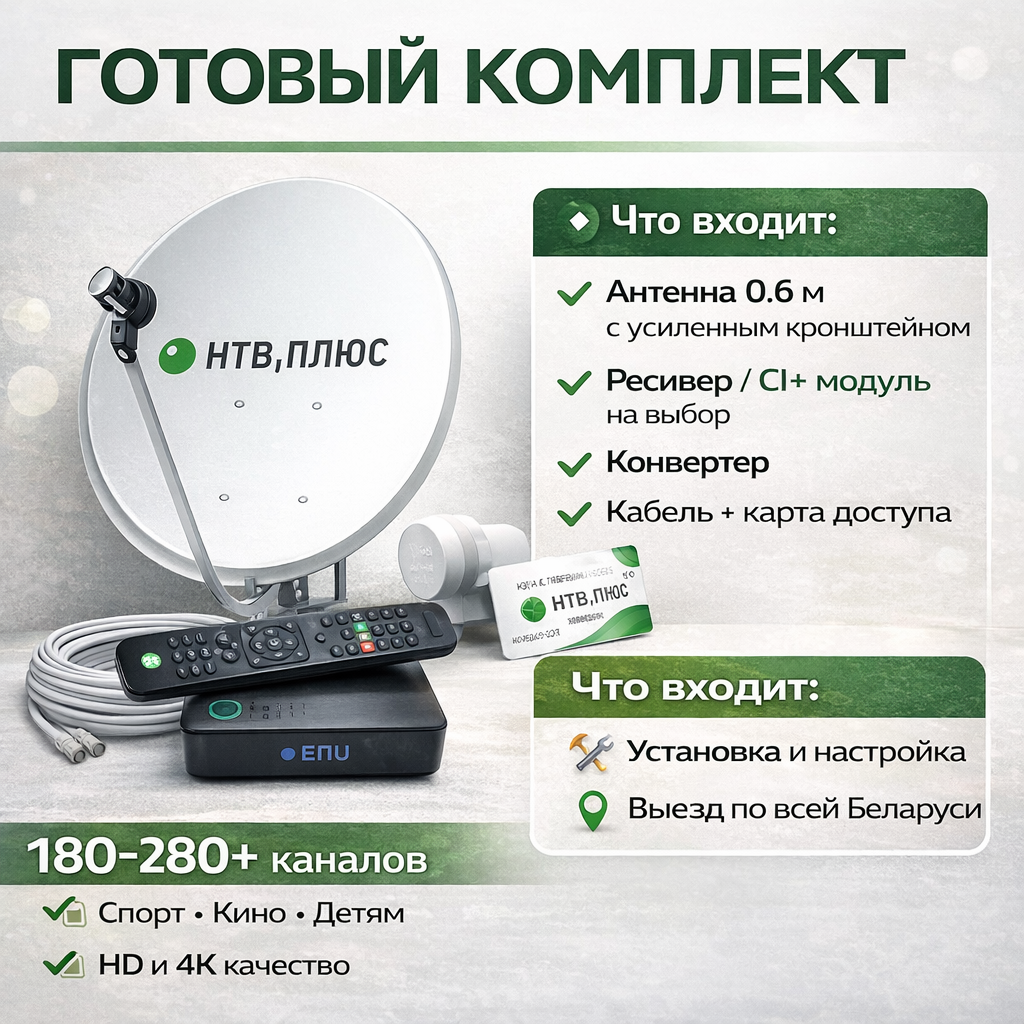 Забудьте о плохом приеме ТВ за городом! Предлагаем готовое решение для стабильного просмотра любимых каналов в любой точке Беларуси. Спутниковый комплект НТВ-Плюс — это идеальный выбор для дачи, где обычная антенна не ловит, а мобильный интернет работает нестабильно.