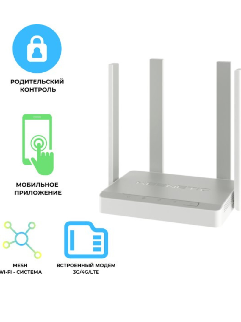 1. Беспроводной маршрутизатор Keenetic Runner 4G KN-2211 802.11n (Wi-Fi 4), 2.4 ГГц, до 300 Mbps, 802.1X, 1xWAN, 3xFast LAN