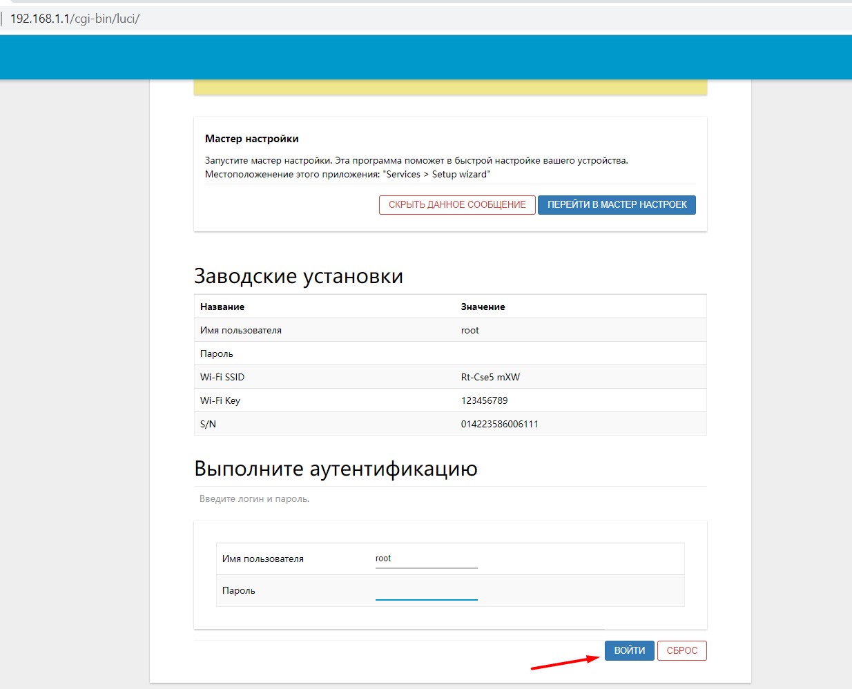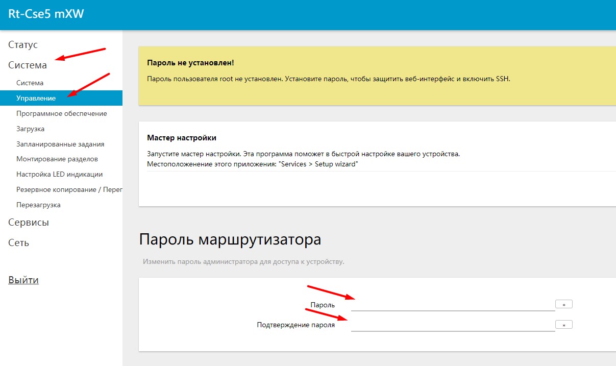 Авторизуйтесь в web-интерфейсе роутера. По умолчанию логин root и без пароля. Рекомендуем сразу поставить пароль на вход в административную панель в целях безопасности, особенно это актуально тем, кто планирует использовать статический адрес.