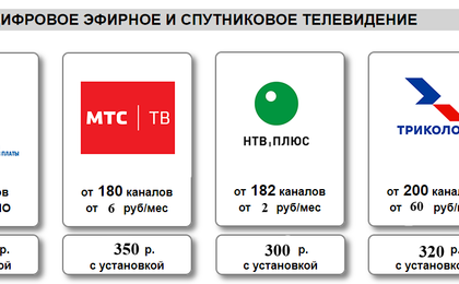 1. Благодаря богатому выбору каналов и комплектов оборудования наибольшей популярностью для среднестатистических клиентов пользуется Триколор ТВ.