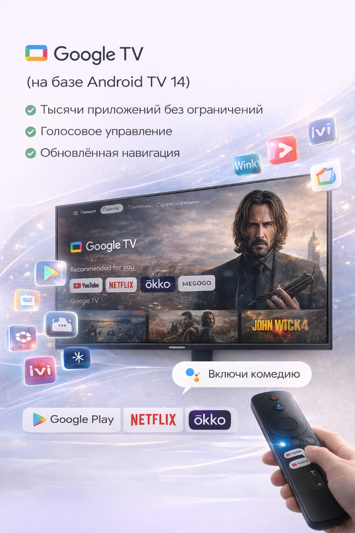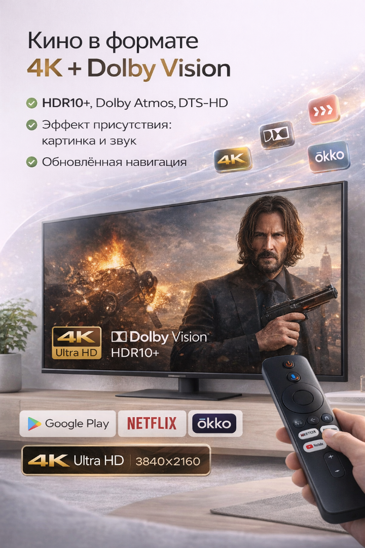 с функцией голосового управления для быстрого поиска фильмов и управления умным домом. Встроенный